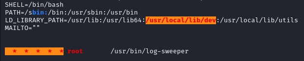 The second Privilege Escalation is slightly harder. It requires us to exploit the utils.so shared object which is missing within the log-sweeper binary, which runs as root every minute.
