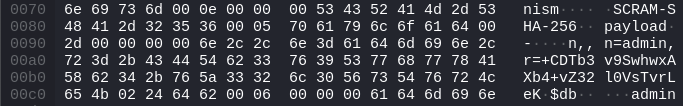 Nice, we appear to have all the needed information to mount our dictionary attack. However, unfortunately for us, neither John nor Hashcat support brute-forcing SCRAM, so we'll have to write our own tool. In order to do that, we have to fully understand the protocol.